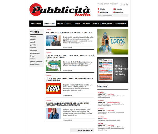 The restyle of Pubblicità Italia's website was made to improve his legibility and the whole user experience